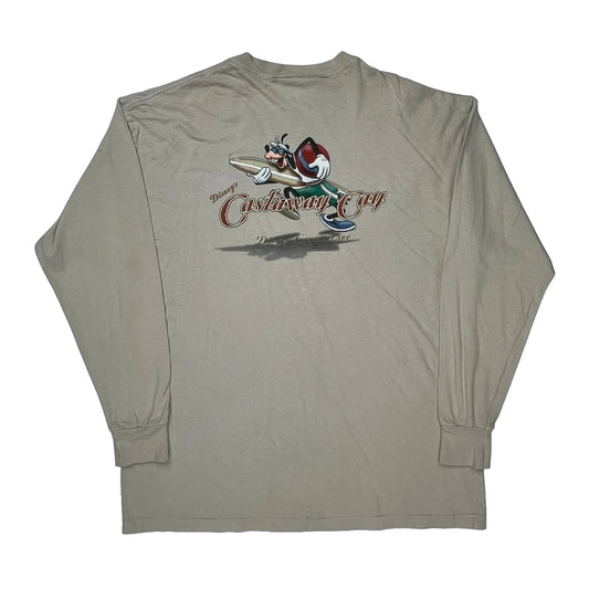 Castaway Cay Disney Cartoon Long Sleeve T-Shirt - XL Beige Cotton