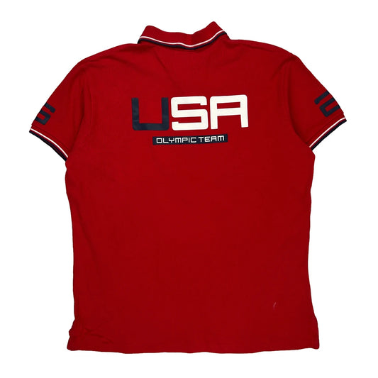 USA Olympic Team Polo By Ralph Lauren Graphic Polo Shirt - Large Red Cotton