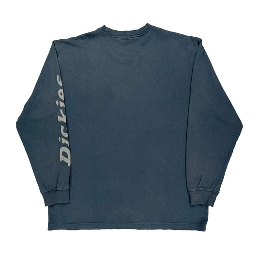 Dickies Spellout Long Sleeve T-Shirt - Large Blue Cotton