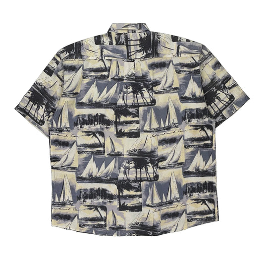 Keeler Bay Graphic Hawaiian Shirt - Large Grey Cotton