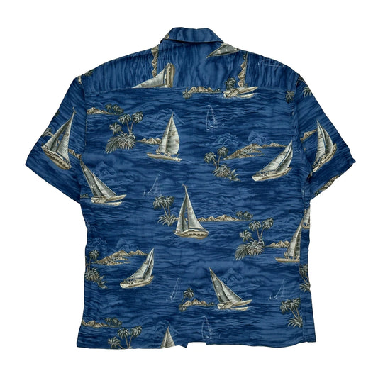 Island Shores Hawaiian Shirt - XL Blue Viscose Blend