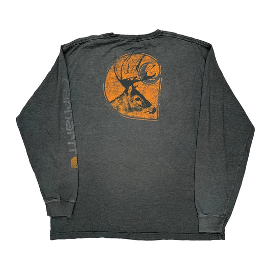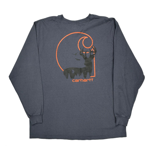 Deer Graphic Carhartt Long Sleeve T-Shirt - XL Grey Cotton