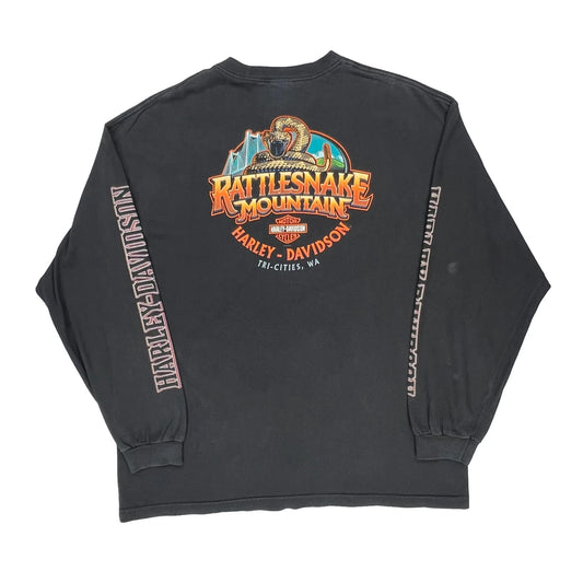 Rattlesnake Mountain Harley Davidson Graphic Long Sleeve T-Shirt - 2XL Black Cotton