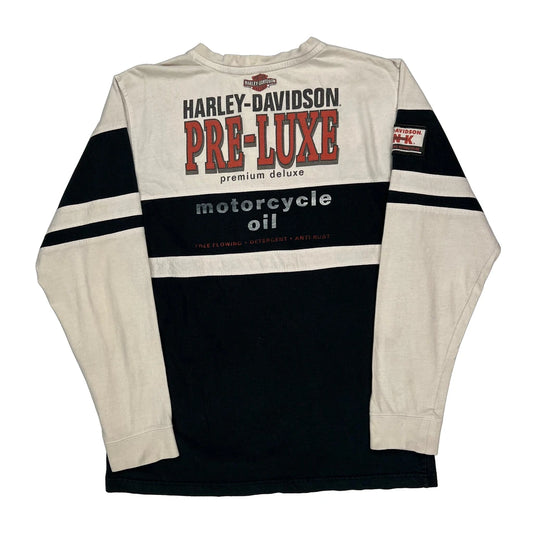 Motorcycle Oil Harley Davidson Graphic Long Sleeve T-Shirt - Medium Cream Cotton