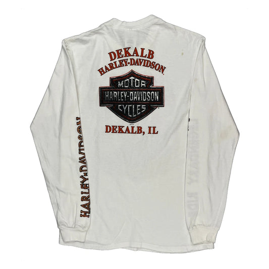 Legendary Ride Harley Davidson Graphic Long Sleeve T-Shirt - Medium White Cotton