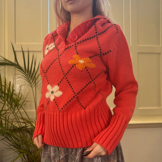 Silmar Floral Jumper - Large Pink Wool Blend
