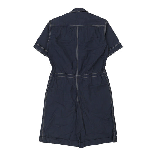 Saint Laurent Contrast Stitch Dress - Small Navy Polyester Blend