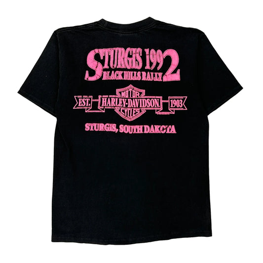 Sturgis 1992 Black Hills Rally Harley Davidson Graphic T-Shirt - Medium Black Cotton