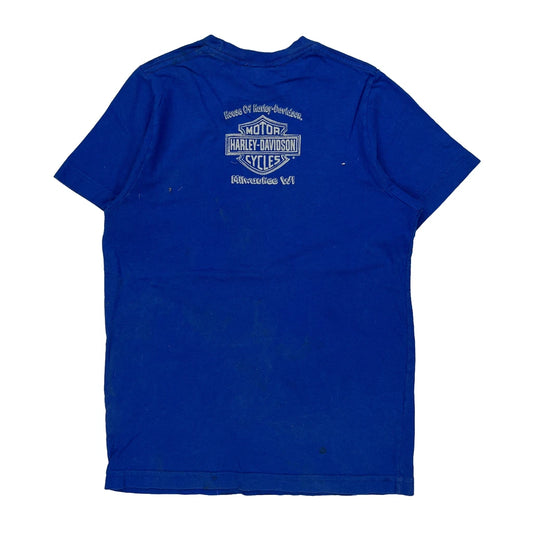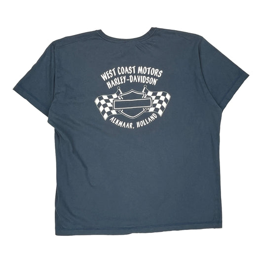 Harley Davidson Graphic T-Shirt - Large Blue Cotton