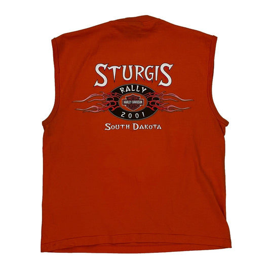 Sturgis Rally 2001 Harley Davidson Graphic T-Shirt - Large Orange Cotton