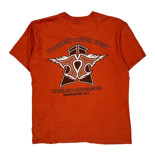 Thunder Tower West Harley Davidson T-Shirt - Large Orange Cotton