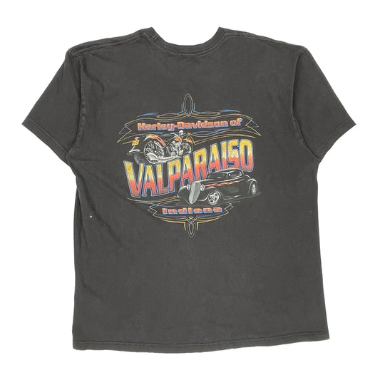 Valparaiso Indiana Harley Davidson Graphic T-Shirt - Large Black Cotton