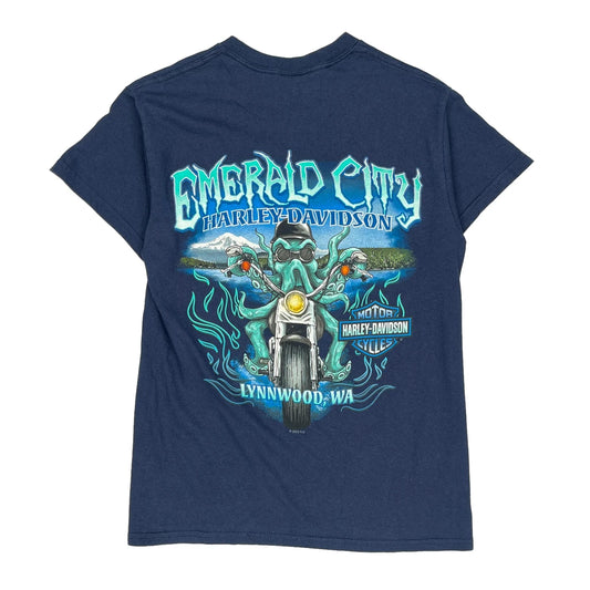 Emerald City Harley Davidson T-Shirt - XS Blue Cotton