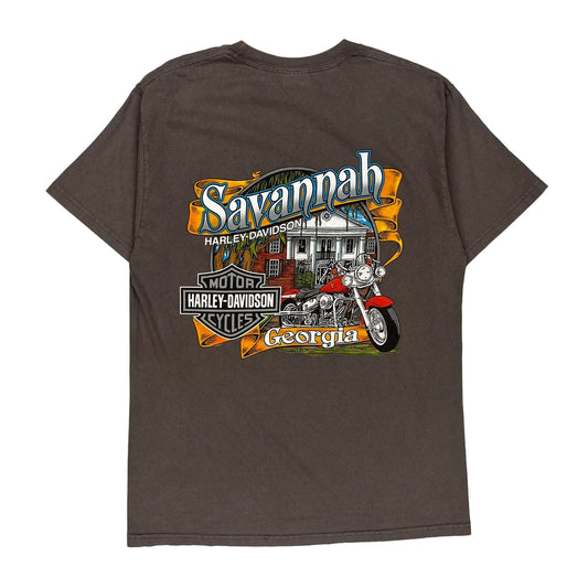 Savannah Harley Davidson Graphic T-Shirt - Large Brown Cotton