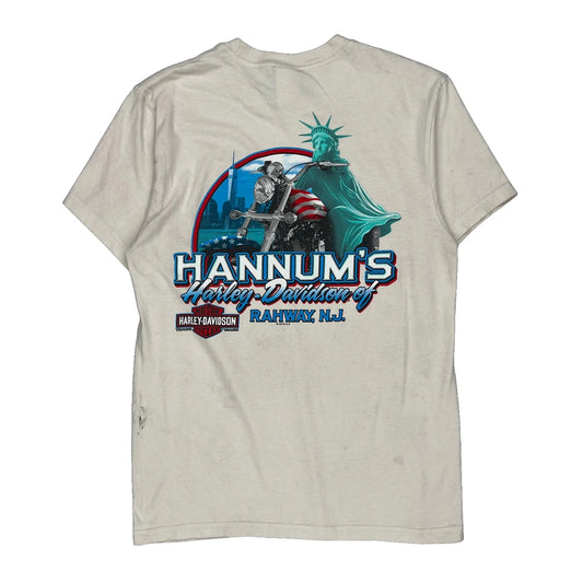 Statue Of Liberty Harley Davidson Graphic T-Shirt - Medium Cream Cotton