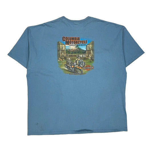 Columbia Motorcycle Harley Davidson Graphic T-Shirt - 3XL Blue Cotton