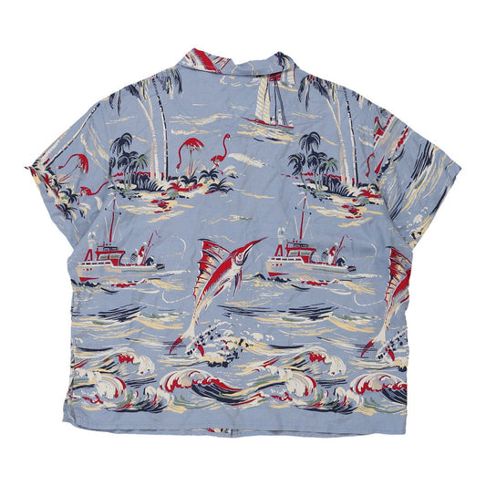 Age 11-12 Liz Claiborne Hawaiian Shirt - Medium Blue Cotton Blend
