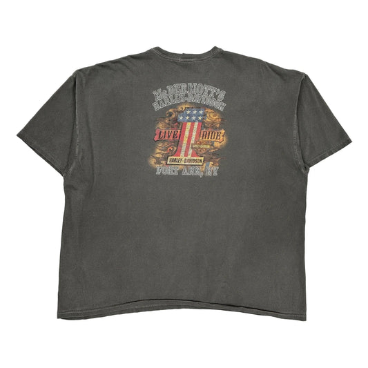 Live To Ride Harley Davidson Graphic T-Shirt - 3XL Grey Cotton