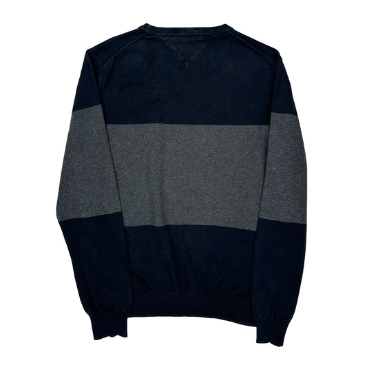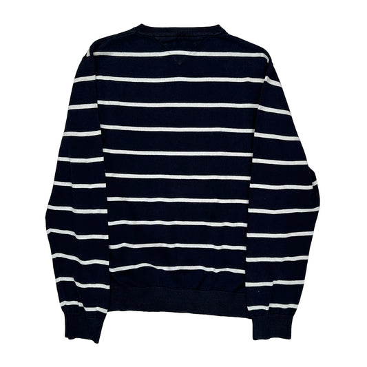 Crest Logo Tommy Hilfiger Striped Jumper - Large Navy Cotton