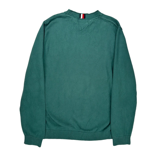 Tommy Hilfiger V-Neck Jumper - Large Green Cotton