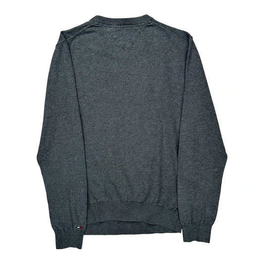 Tommy Hilfiger V-Neck Jumper - Large Grey Cotton Blend