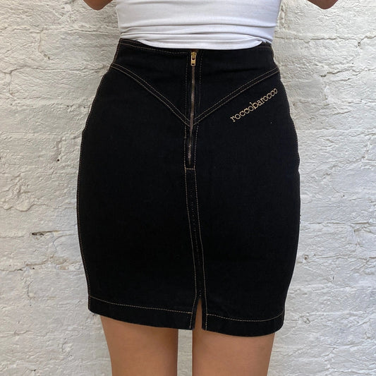 Roccobarocco Skirt - 26W UK 6 Black Cotton