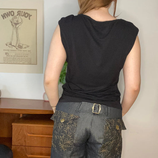 Cheap & Chic Moschino Floral Top - Large Black Viscose