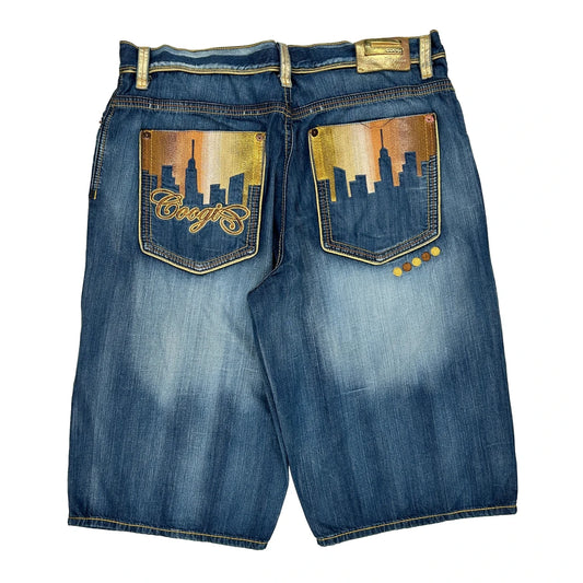 Coogi Graphic Denim Shorts - 44W 18L Blue Denim