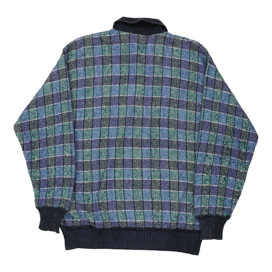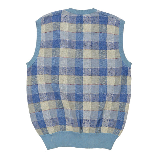 Alan Robert Checked Sweater Vest - Small Blue Cotton Blend