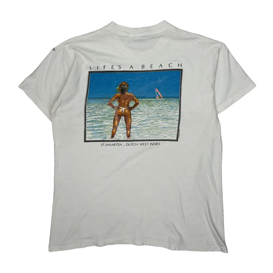 St. Maarten Anvil Graphic T-Shirt - XL White Cotton