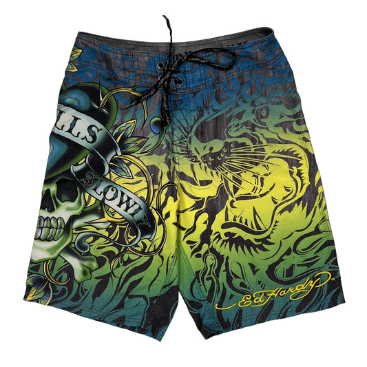 Skull Design Ed Hardy Graphic Shorts - 31″ Waist Multicoloured Polyester