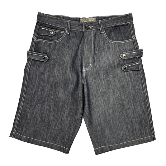 Raider Denim Shorts - 34W 12L Grey Cotton