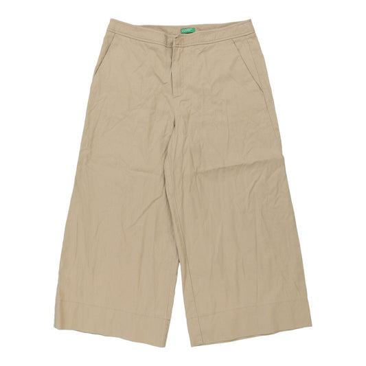 3/4 Length Benetton Wide Leg Trousers - 30W UK 10 Beige Cotton