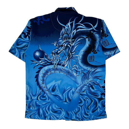 Dragon Ur Graphic Hawaiian Shirt - Medium Blue Polyester