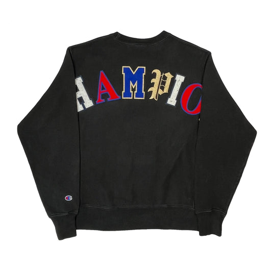 Reverse Weave Champion Spellout Sweatshirt - Medium Black Cotton