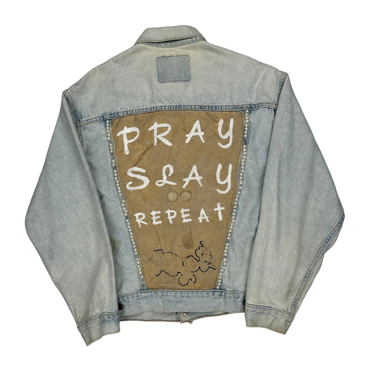 Pray Slay Repeat Levis Graphic Denim Jacket - XL Light Wash Denim