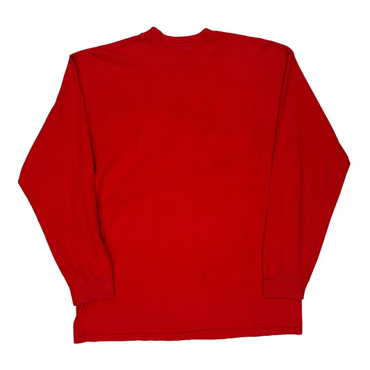 Nike College Long Sleeve T-Shirt - Large Red Cotton