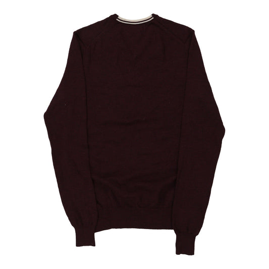 Fred Perry V-neck Jumper - Small Burgundy Merino Wool
