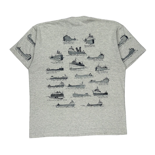 Ships Of The Soo Locks Screen Stars Single Stitch T-Shirt - XL Grey Cotton Blend