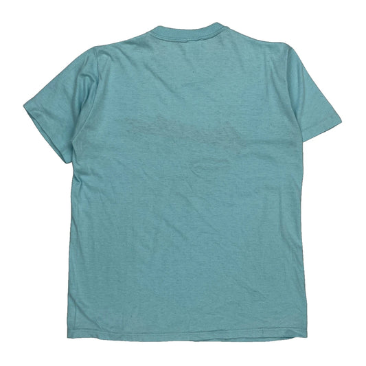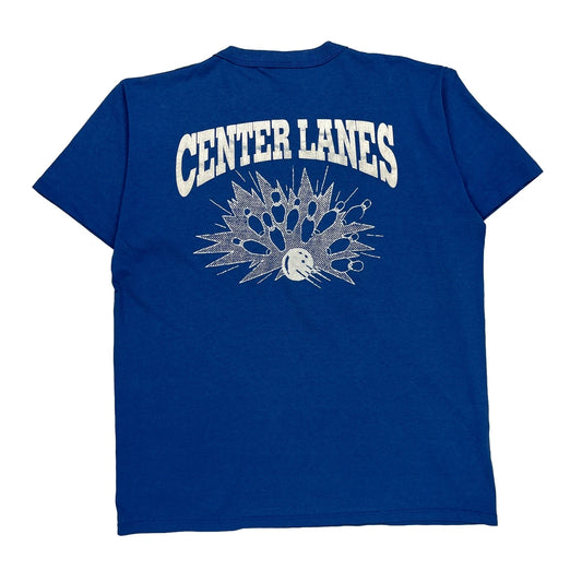 Center Lanes Russell Athletic Single Stitch T-Shirt - Large Blue Cotton
