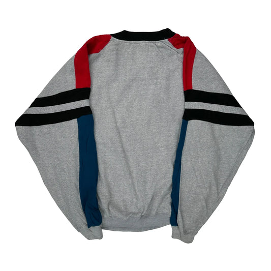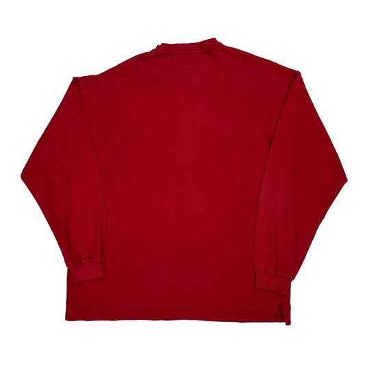 There are many original styles in this vintage selection. Common 90s designs include: crewneck sweatshirts, collared crewnecks, henley style tops, full zip ups, quarter button sweatshirts, quarter zip sweatshirts.