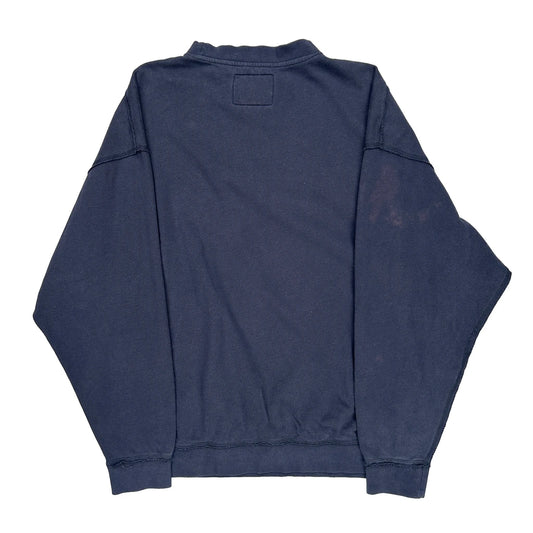 There are many original styles in this vintage selection. Common 90s designs include: crewneck sweatshirts, collared crewnecks, henley style tops, full zip ups, quarter button sweatshirts, quarter zip sweatshirts.