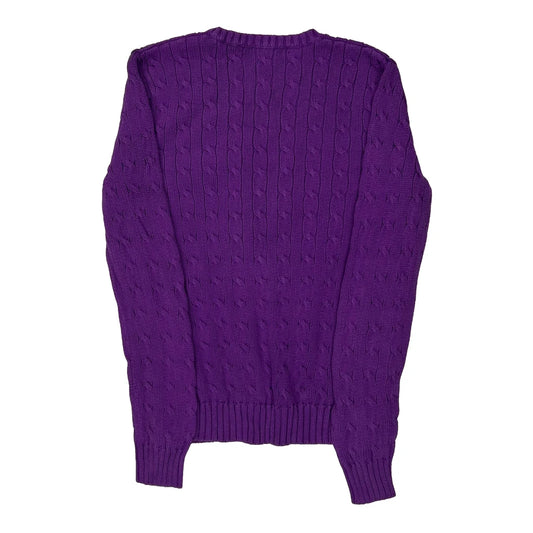 Ralph Lauren Sport Cable Knit Jumper - Large Purple Cotton
