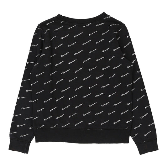 Champion Spellout Sweatshirt - Medium Black Cotton