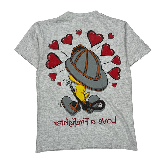 Firefighter Looney Tunes Cartoon T-Shirt - Medium Red Cotton