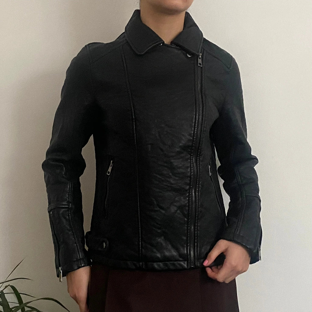 Nice And Chic Leather Jacket - Large Black Polyurethane
