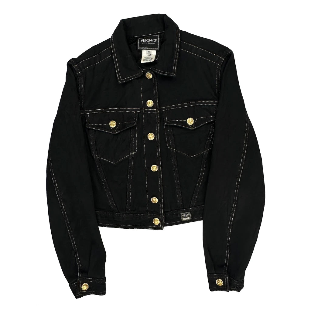 Versace Jeans Couture Contrast Stitch Denim Jacket - Small Black Cotton