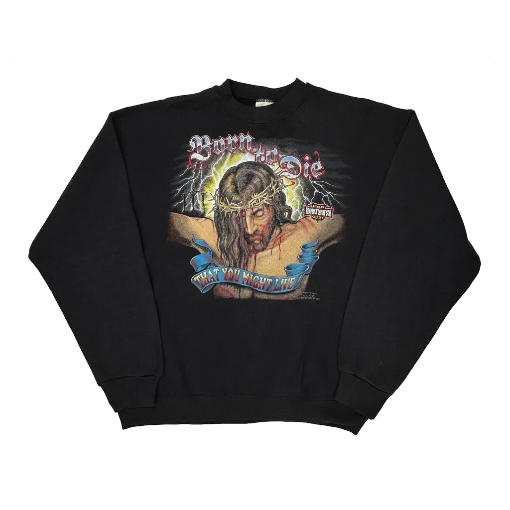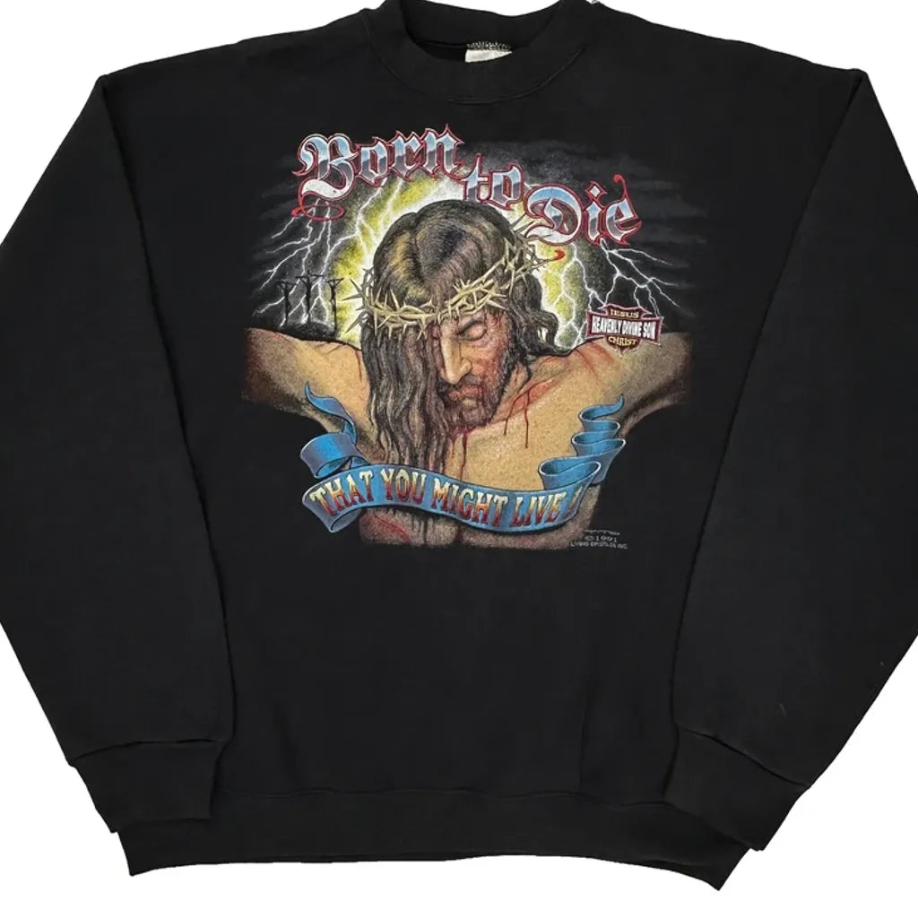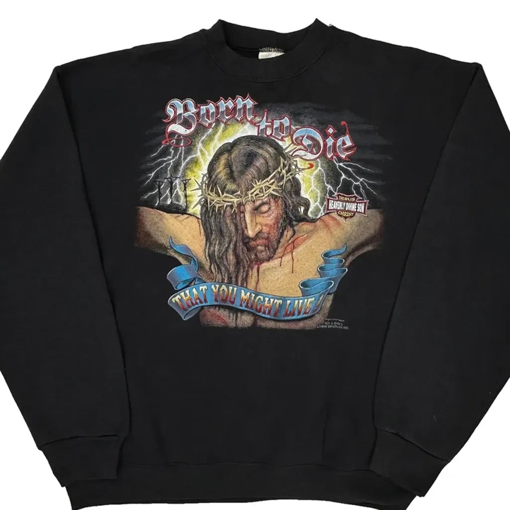 1991 Born To Die Tultex Jesus Christ Sweatshirt - XL Black Cotton
