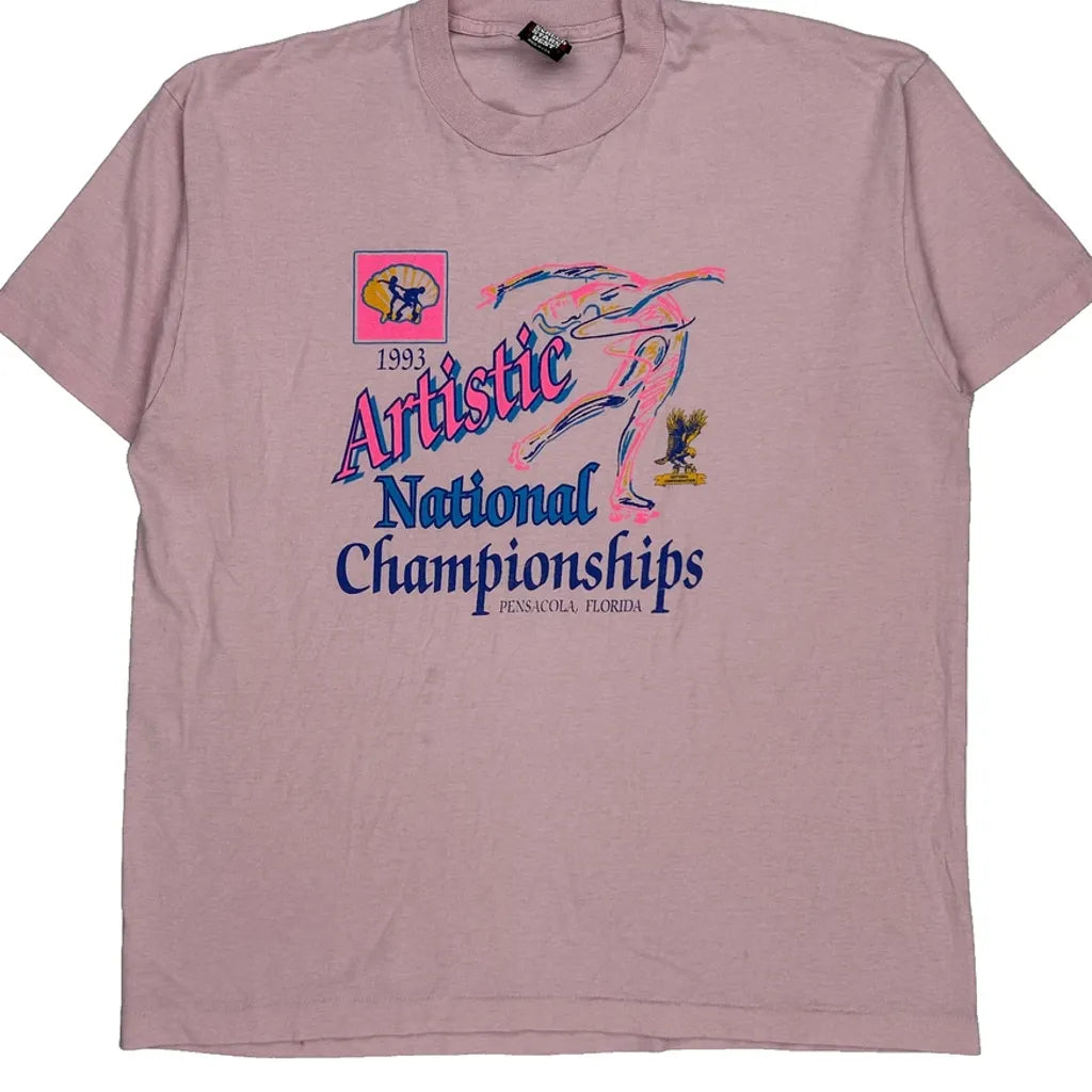 1993 Made In USA, Artistic National Championships Screen Stars Graphic T-Shirt - XL Pink Cotton Blend