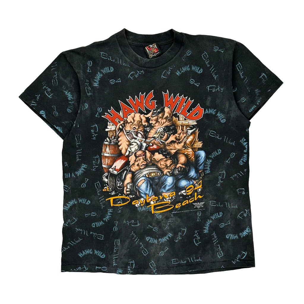 1994 Daytona Bike Week Hawg Wild 3D Emblem Graphic T-Shirt - Large Black Cotton